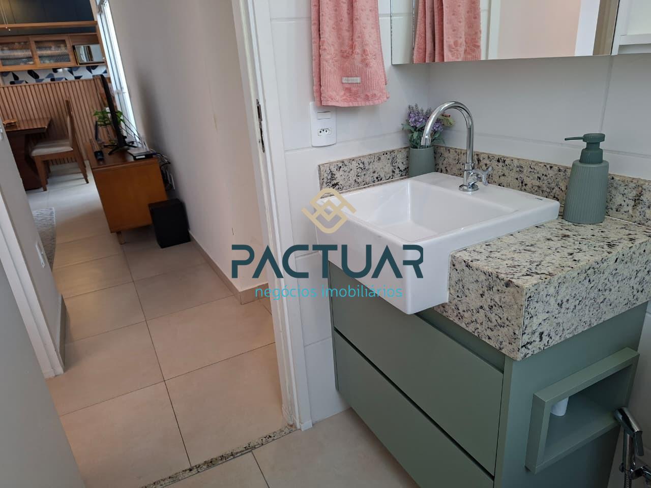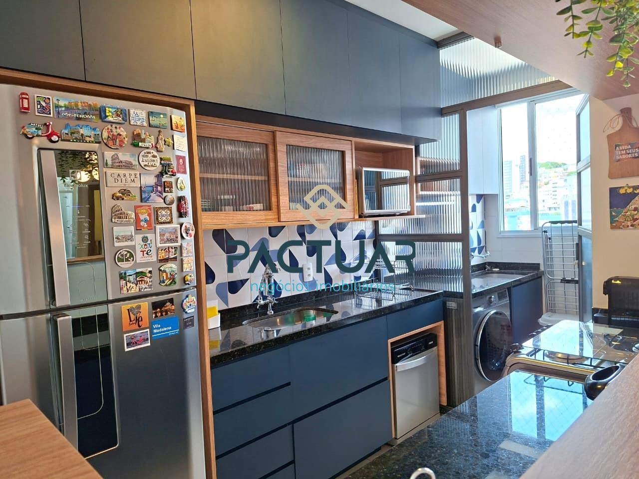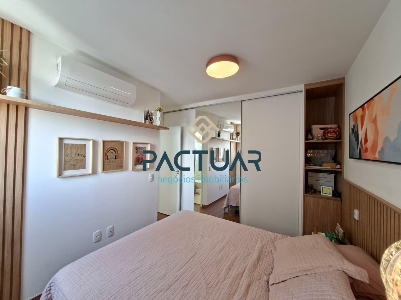 3 quartos, sendo 1 suíte com armário, banho social com cuba sobreposta, sala para 2 ambientes com charmosa varanda fechada em cortina de vidro e rede de proteção, cozinha planejada, muito bem equipada com armários , área de serviço separada com armários , ar-condicionado na sala e em 2 quartos ,piso laminado e porcelanato.