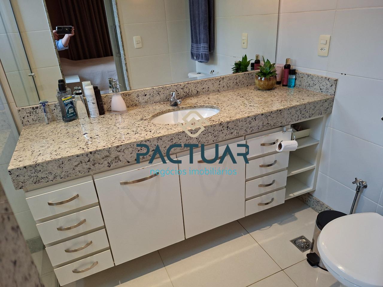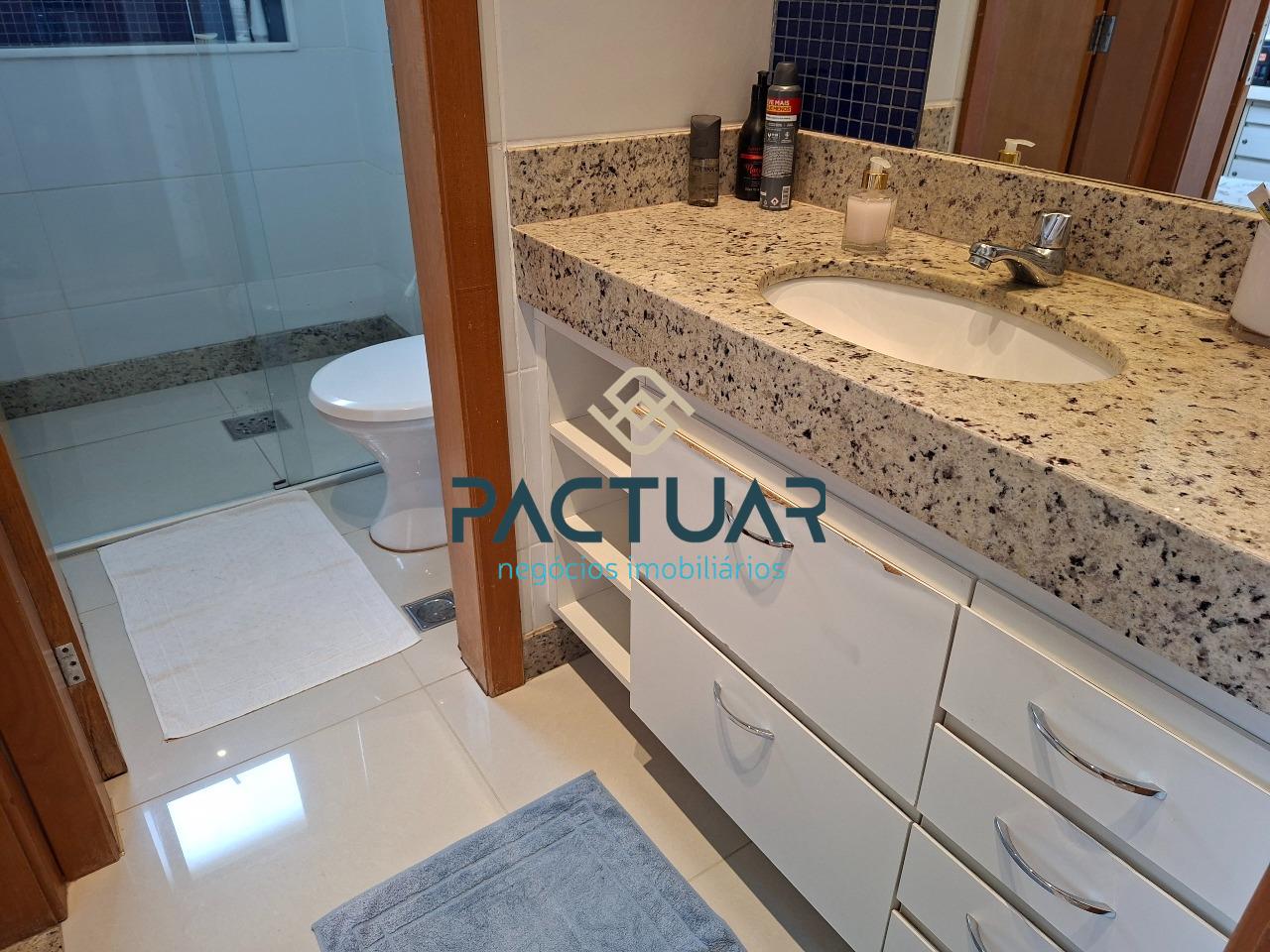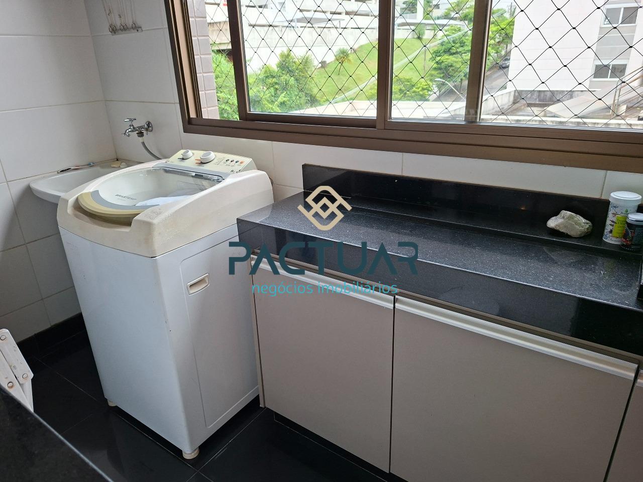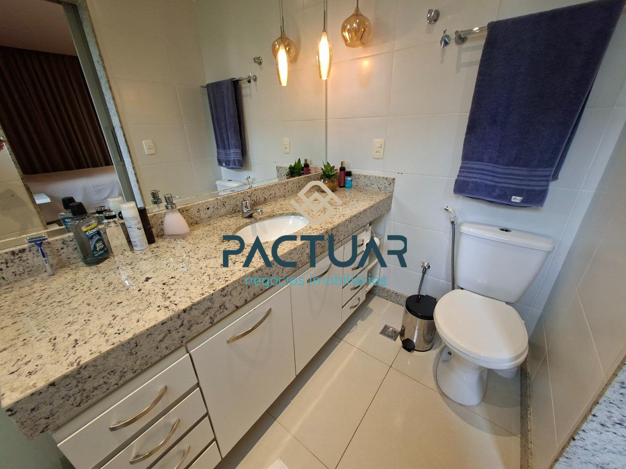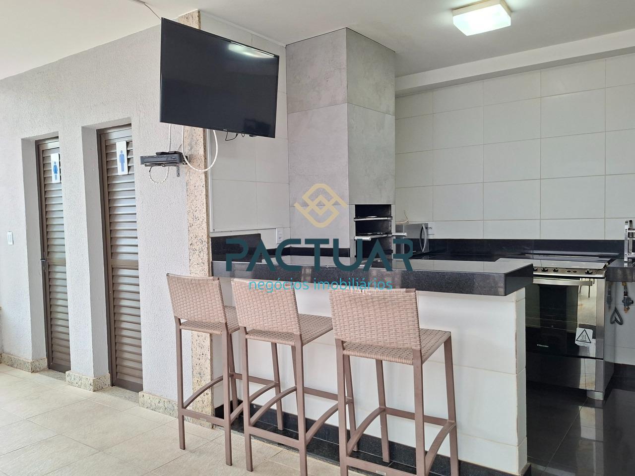 A cozinha é funcional e totalmente equipada, com armários planejados e bancada para lanche, além de área de serviço separada e banho de serviço. Os banheiros possuem armários, e os acabamentos valorizam o imóvel, com pisos em porcelanato e laminado, reforçando o design moderno e os ambientes bem planejados.